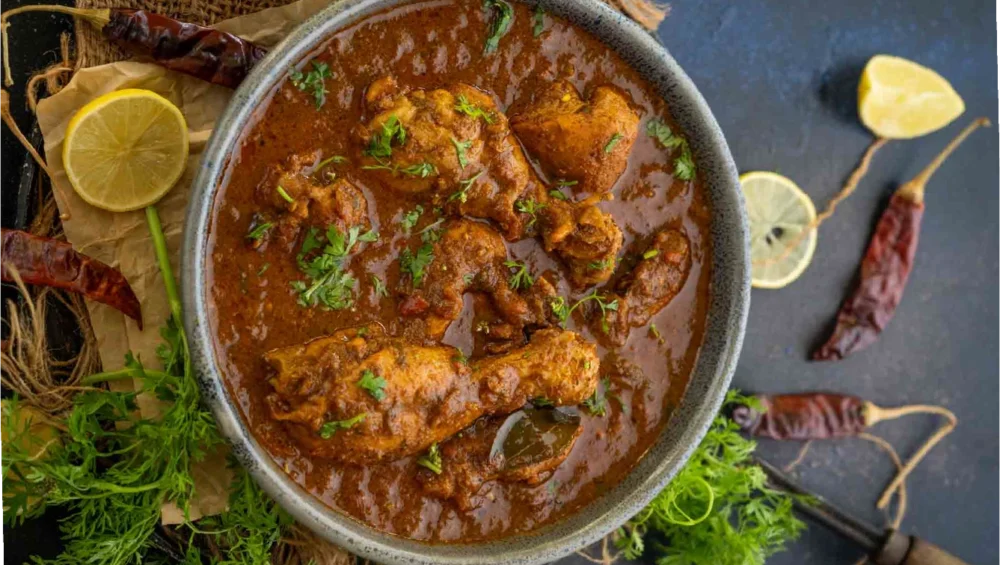 - Andhra chicken curry is a Sunday family meal tradition.